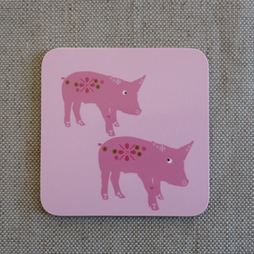 Beautiful coasters featuring piggies. Designed and printed in the UK these melamine coasters are gloss finished with a cork backing. They are extremely durable, heat resistant to 145 degrees, stain & scratch resistant too.